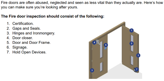 - Check your fire doors against the inspection points in SC’s Fire Policy Guidance.