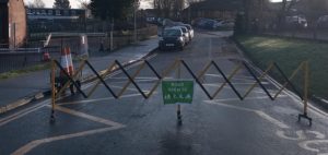 The Steward’s role includes operating the temporary barrier, monitoring vehicle access, and giving guidance to drivers who are permitted to proceed, such as those attending the doctors or community hall. Cones are also placed strategically to reinforce the temporary restriction and promote safer pedestrian space.